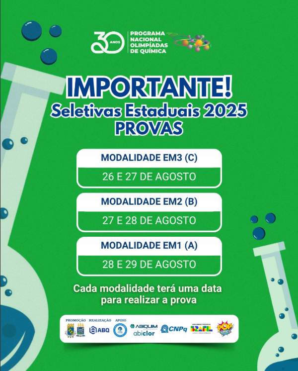Resultados provisórios da OBQJr 2025 (Modalidades A e B) estão disponíveis! Recursos aceitos até as 15h de 10/12.